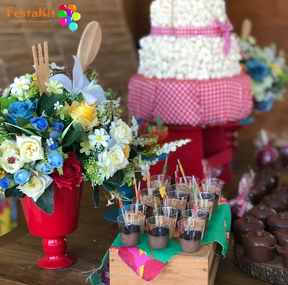 Vamos comemorar o Charraiá deste casal pra lá de especial... E assim ficou a decoração, bolo Fake de pipoca e estas panelinhas de chocolate ao leite recheadas com aquele mousse de maracujá que todos respeitam!!!! hummmm😋😋